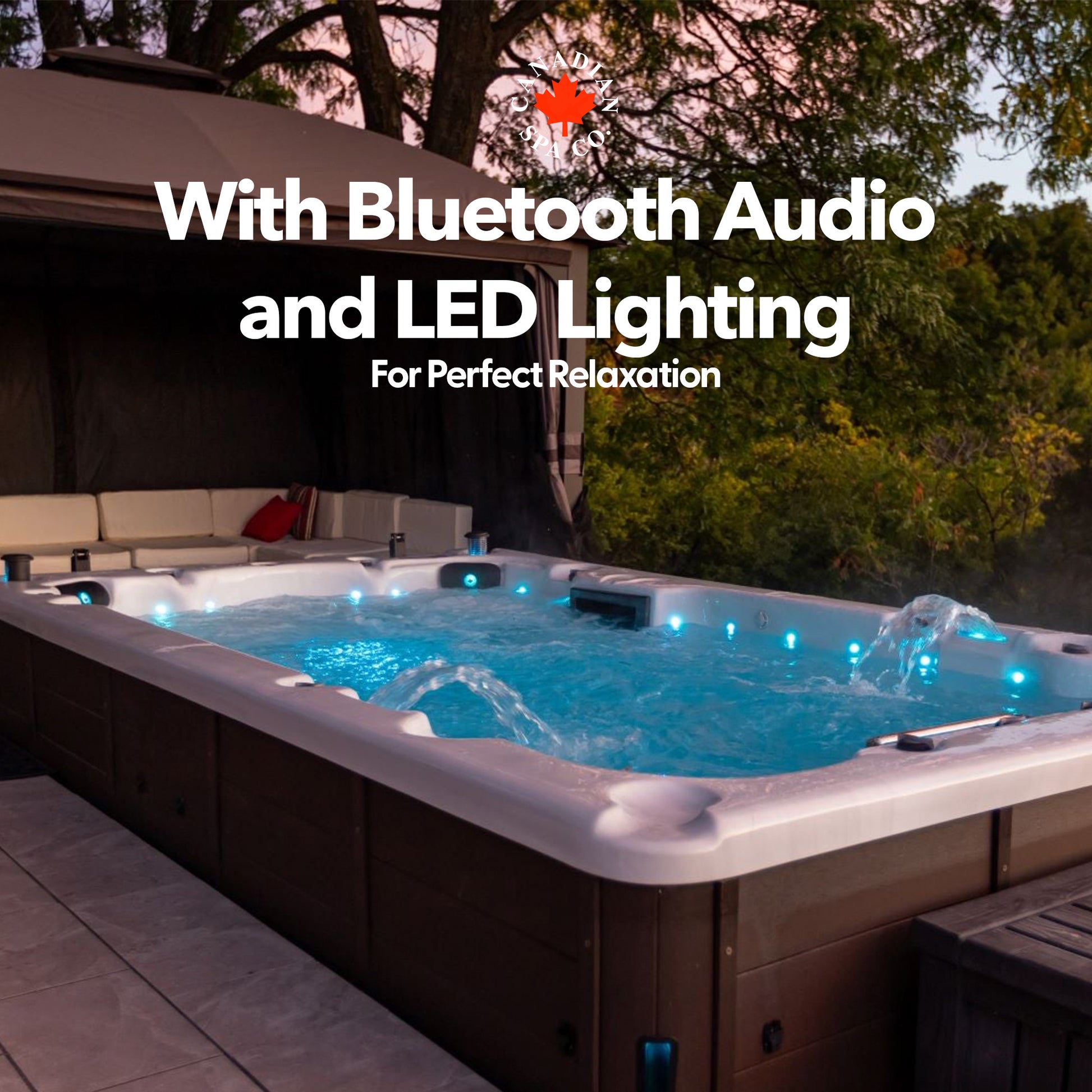 The St. Lawrence 16ft Swim Spa is designed to provide luxurious energy-efficient performance. Its hydrotherapy jets, swim current, and counter-current jets work together to create a powerful and calming massage. Constructed with high-grade components and a durable shell, it offers a safe and enjoyable swimming experience.