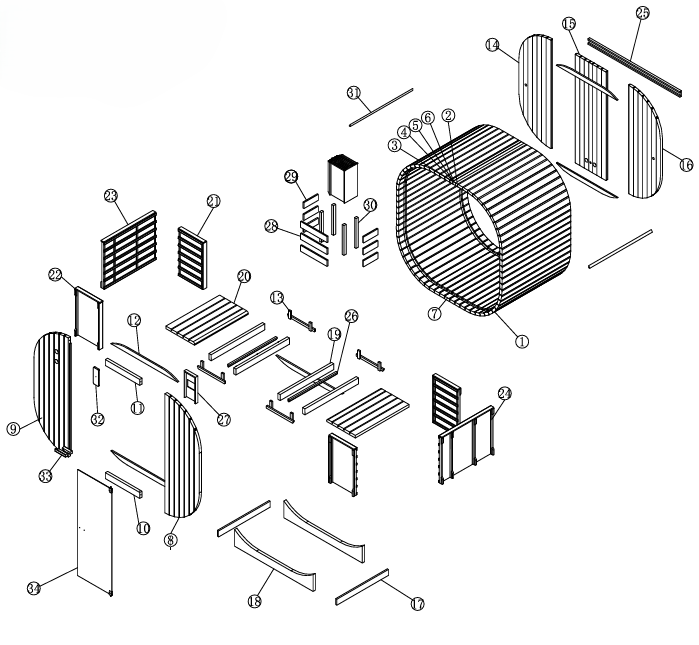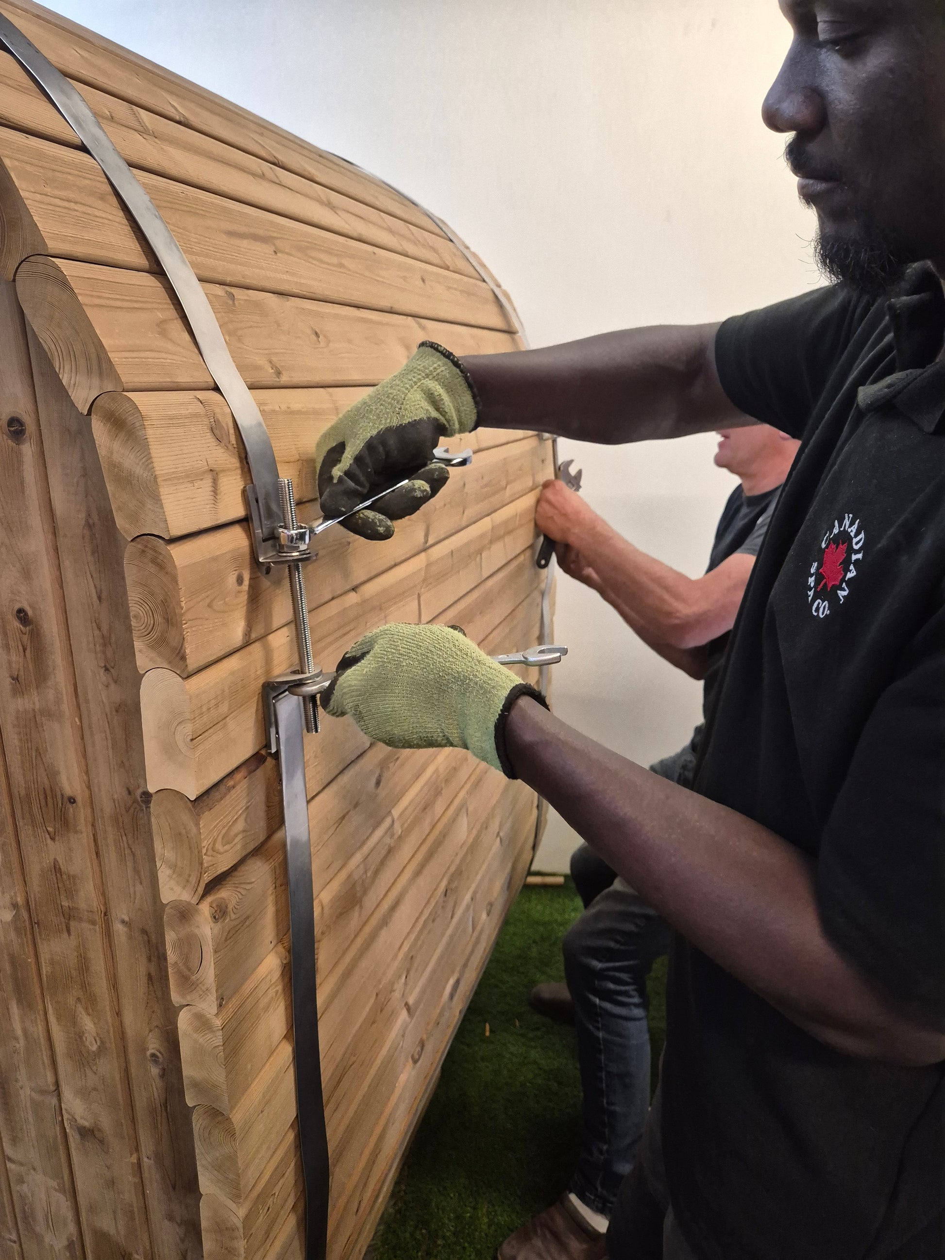 Outdoor Oval Sauna Delivery and Set-Up. Deliver to the position of choice, assemble, demo, and remove packaging.