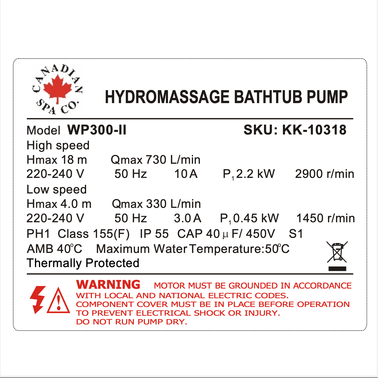 p/n: 897.3-1 Hydro-max pump WP300 II Special ..4 hp, 10 amp,2 speed ..2,6 inch x 2 inch unions..all Canadian S...