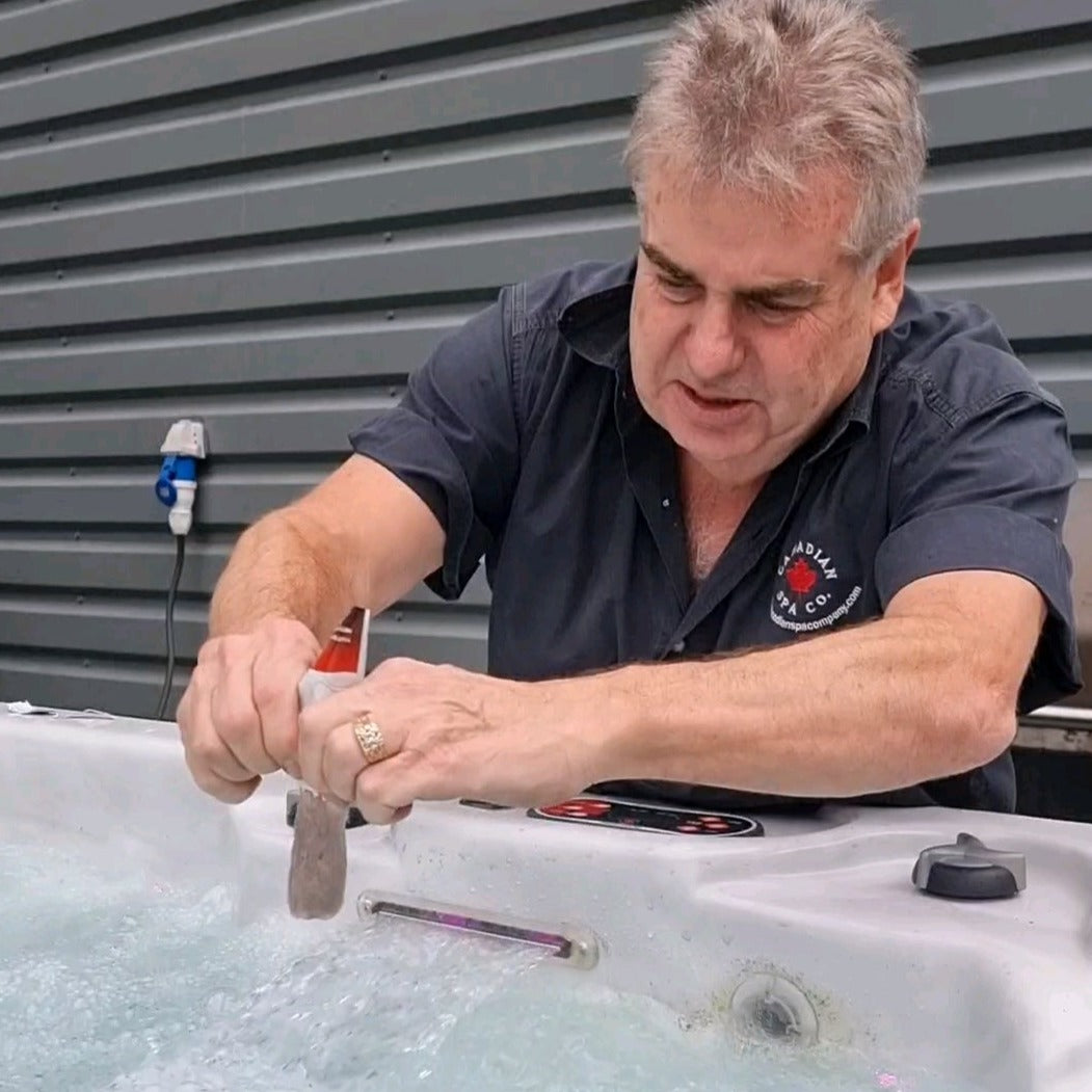 - Remove filter(s) rinse them then place them in the spa water