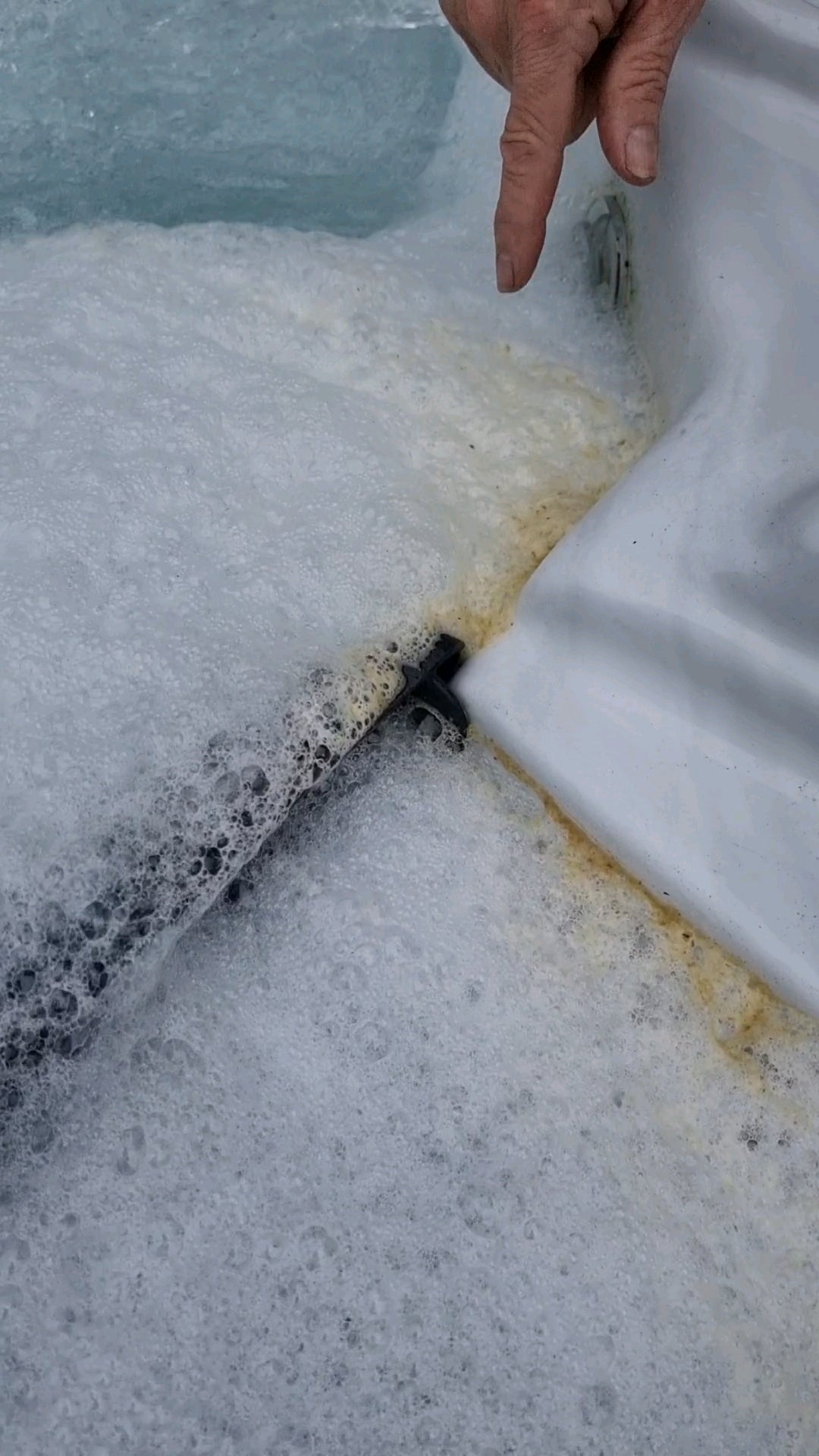 - Wipe sticky gunk from inside of spa, dump out as much old water as possible