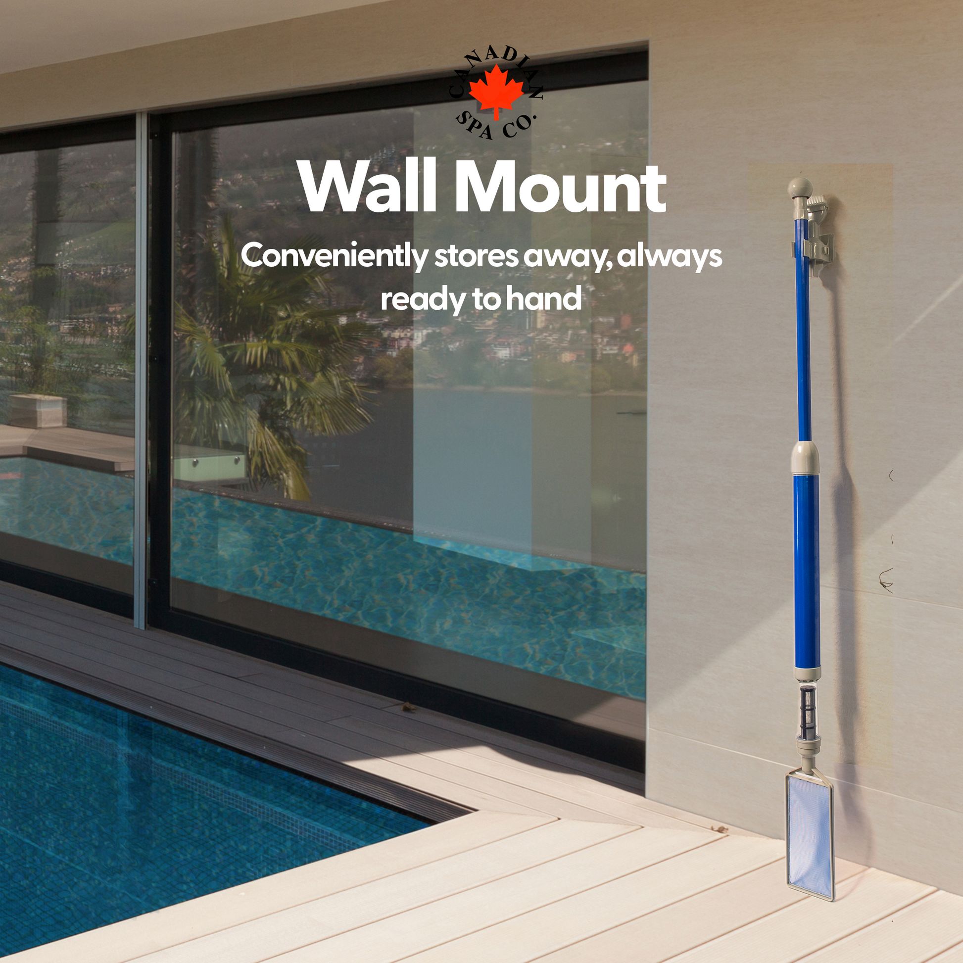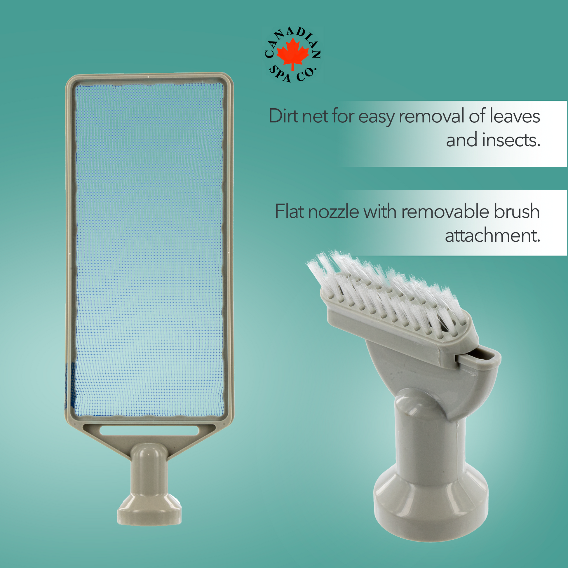 Includes: leaf skimmer, slide-on brush, dual nozzle and wall mount