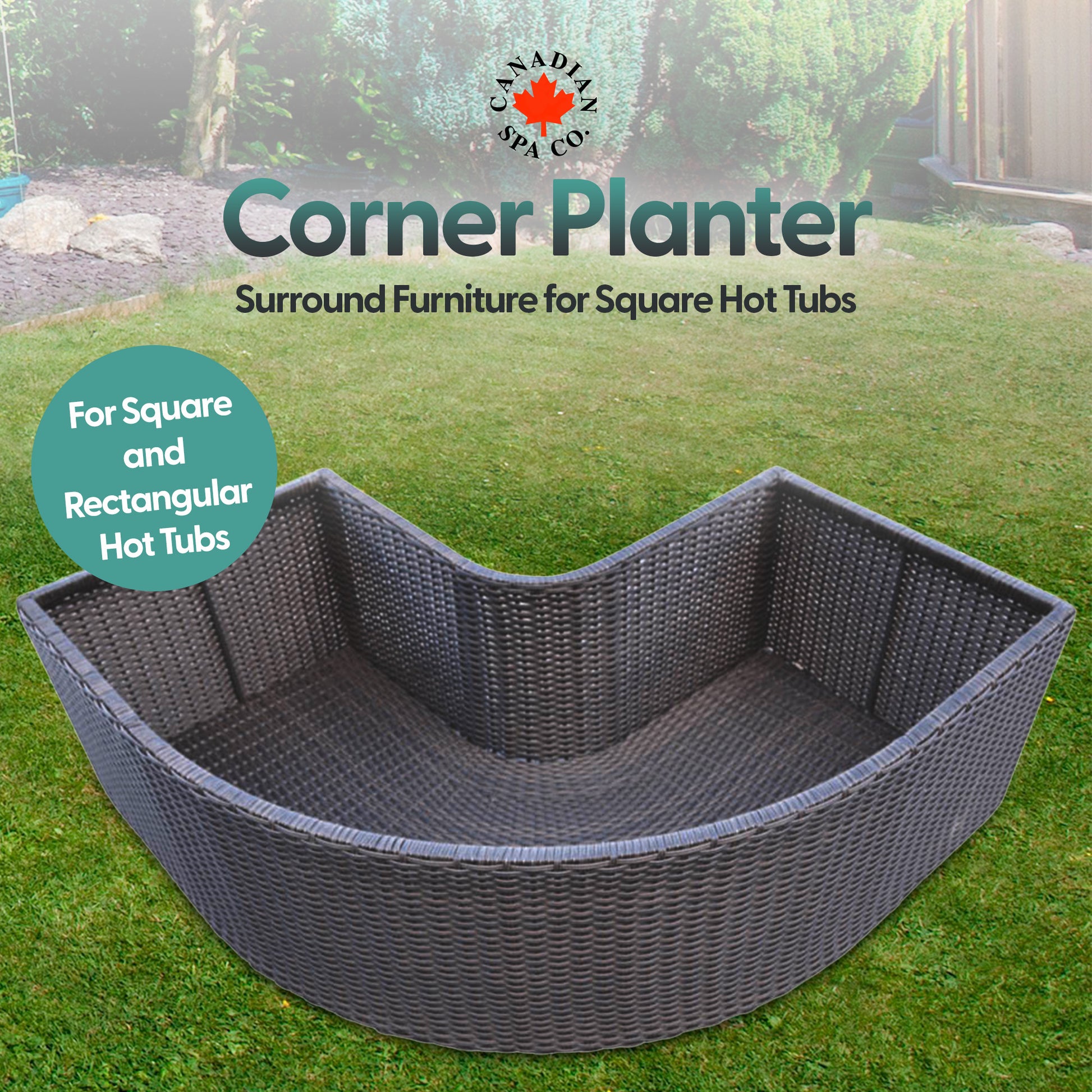 Use the Corner Planter to display your favourite plants and shrubs and create the perfect atmosphere while you relax in your spa. It features an attractive wicker finish, constructed of a durable, weather resistant, synthetic rattan. This planter is designed to be used alongside other items from the Square Spa Surround Furniture collection to create the ultimate outdoor oasis that perfectly wraps around your square or rectangular spa.