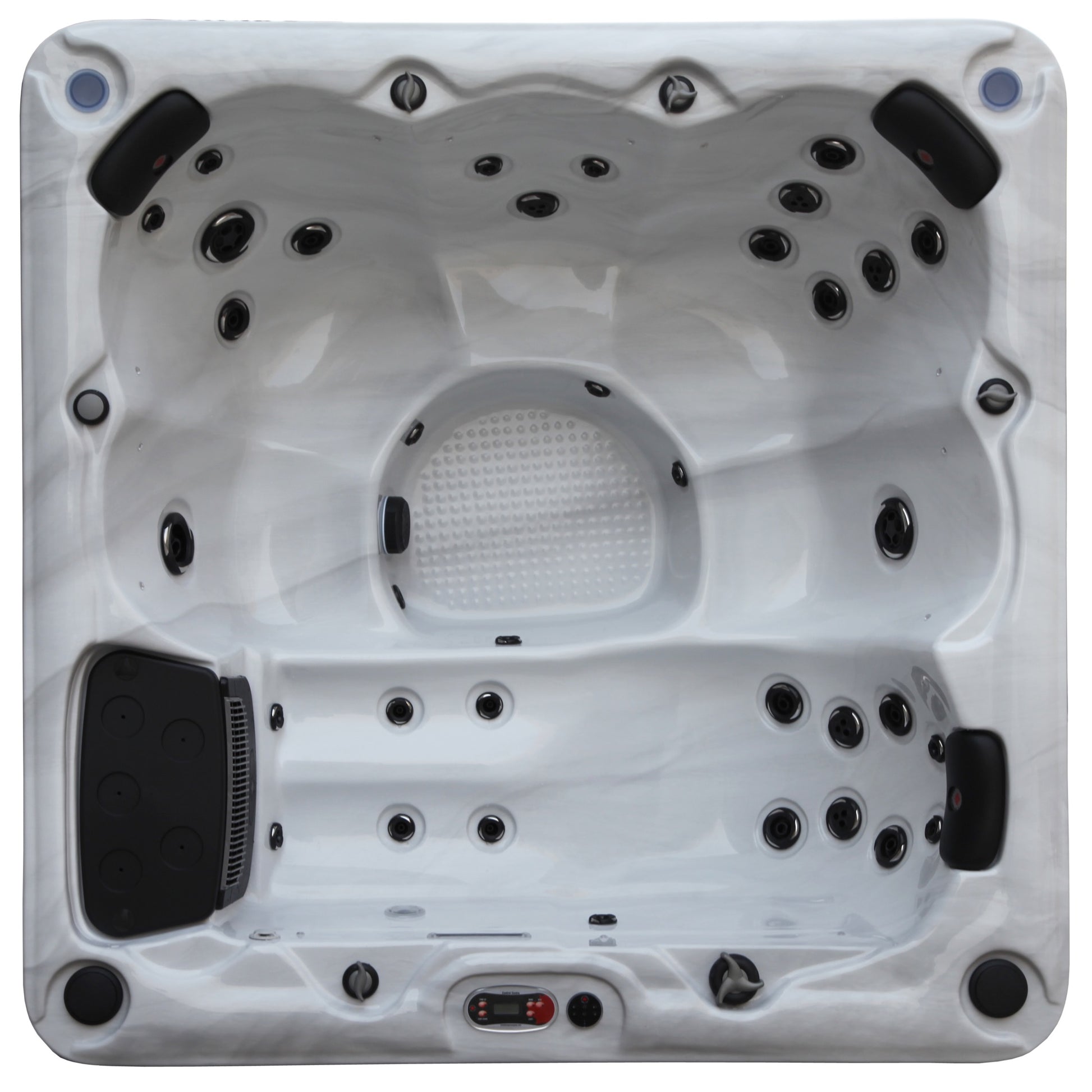 The Canadian Spa Company Winnipeg UV spa offers powerful therapeutic seats for a fully-body hydro-massage. This elegant model comfortably seats up to 6 adults. It features 35 adjustable stainless steel hydrotherapy jets and is energy-efficient and easy to install –